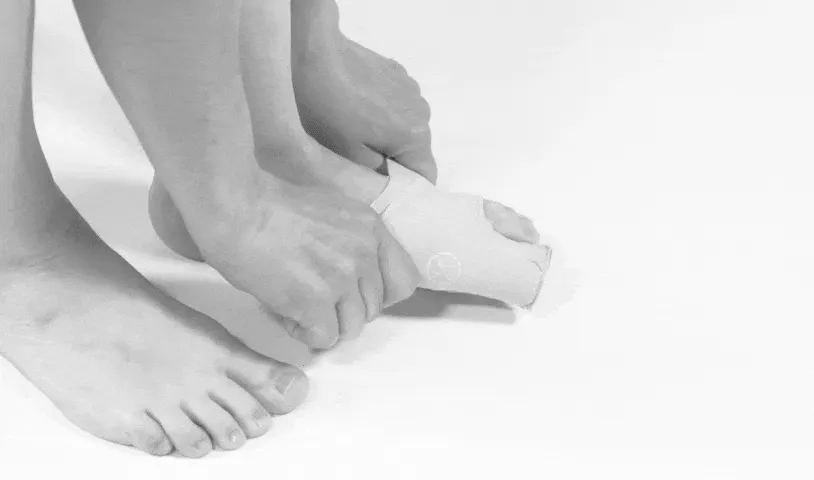 De corrigerende orthese voor 's nachts kan ook overdag gebruikt worden om de grote teen opnieuw in de juiste positie te plaatsen.
